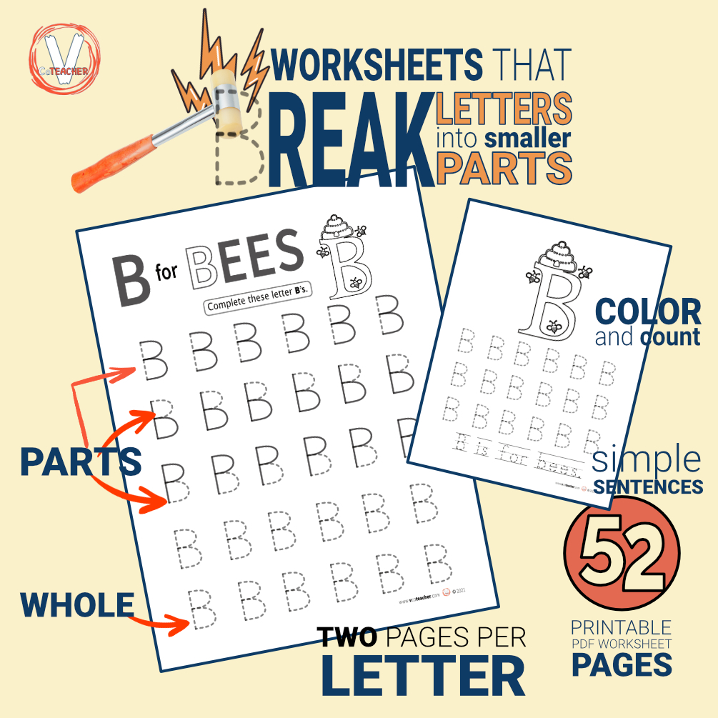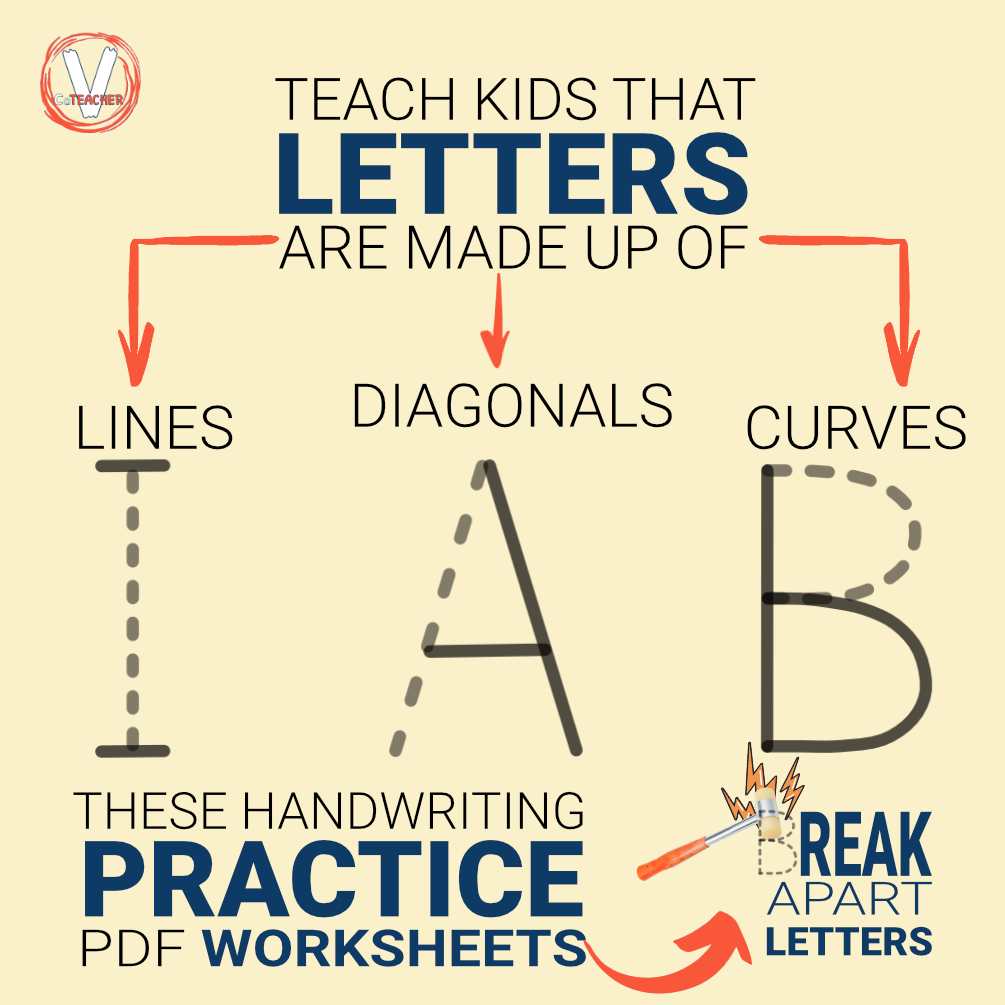 Printable ABC PDF handwriting practice sheets that breaks apart each letter for easy writing.